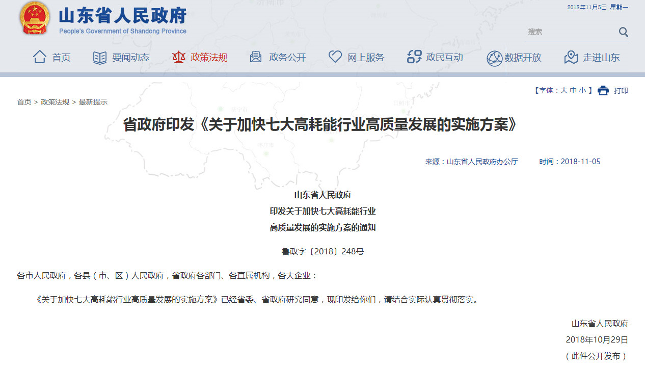 近日山東省人民政府印發(fā)《關(guān)于加快七大高耗能行業(yè)高質(zhì)量發(fā)展的實(shí)施方案的通知》,